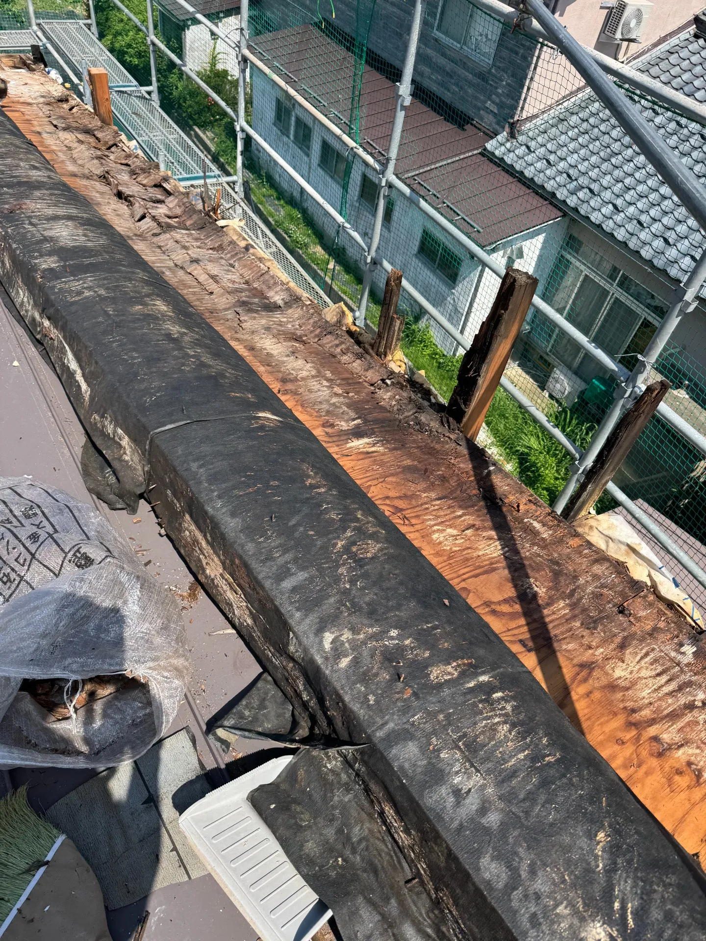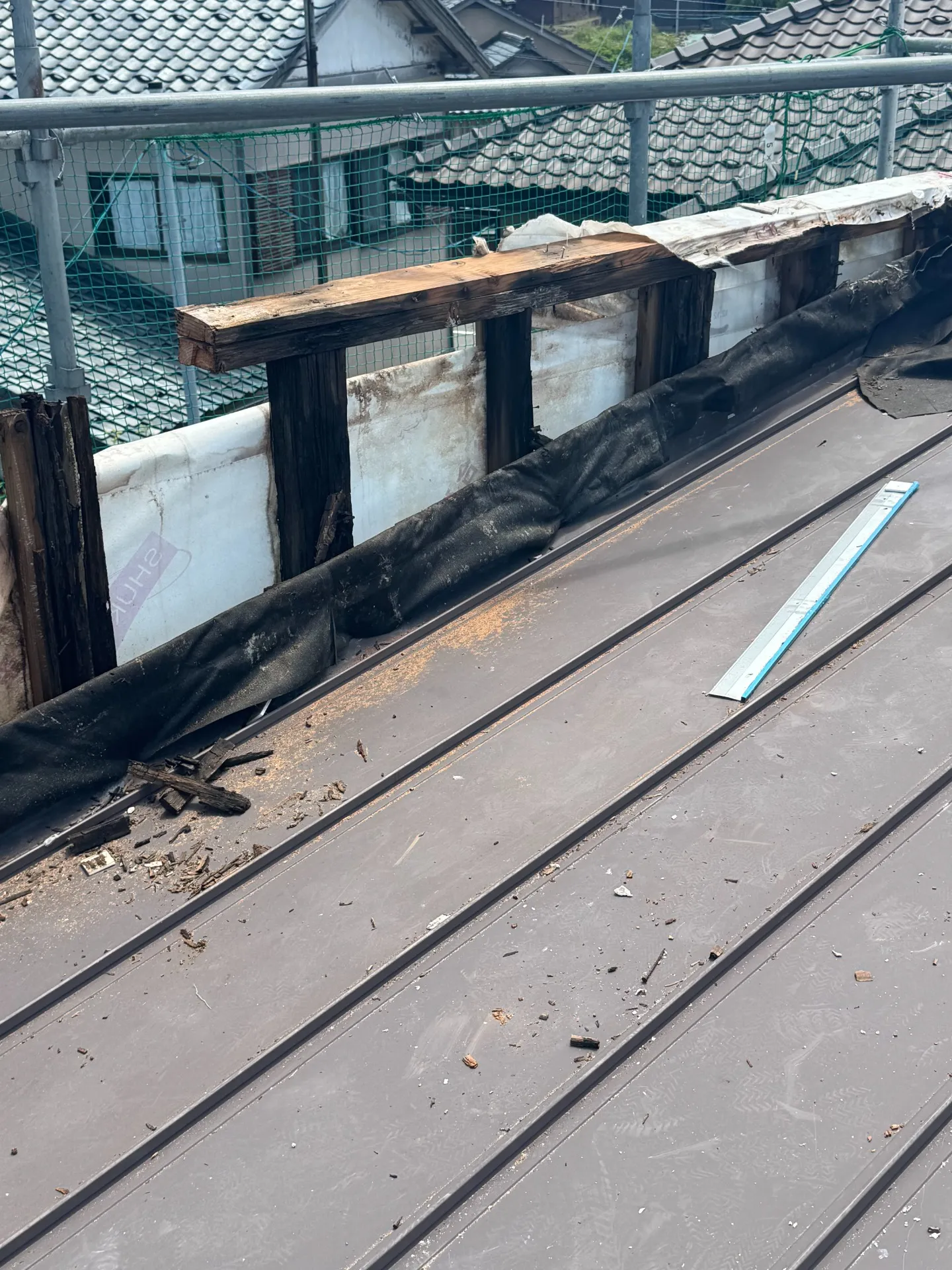 結露と判断して屋根を隠すパナペット(壁)を取り壊し